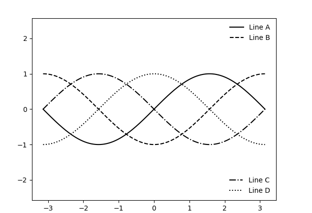 Leg=Legend(Axes,lines[2:],['Line C','Line D'],loc='lower right',frameon=False)