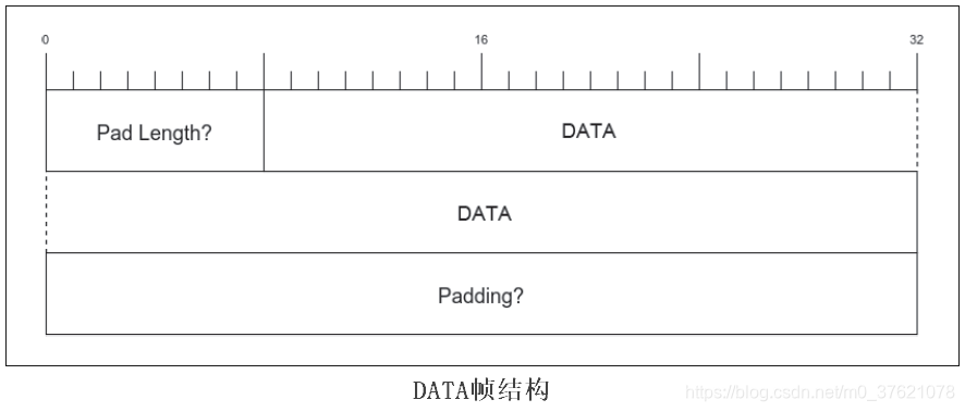 DATA帧(类型Type = 0x0)比较简单,主要是用来封装报文主体数据的,DATA帧结构定义如下(HTTP/2帧首部定义前面介绍过了,这里的DATA帧结构属于HTTP/2帧结构中的Frame Payload部分,其余类型帧结构定义也是如此):