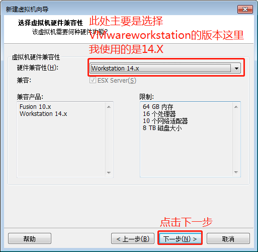 3、选择虚拟机的硬件兼容即虚拟机版本