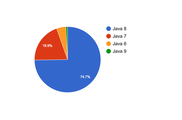 如您所见,Java 8的采用率已经达到了开发者社区的75%。