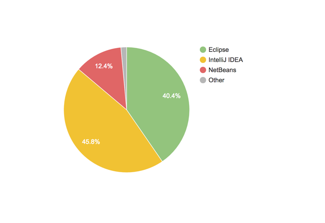 在IDE方面,IntelliJ正在从Eclipse获得与去年相同的市场份额,并且没有任何时候放缓迹象。