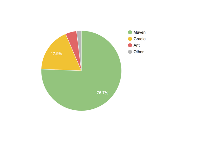 构建工具去年的情况是:Maven坐拥72.5%份额,Gradle为19%份额: