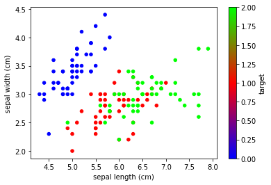 | sepal length (cm) | sepal width (cm) | petal length (cm) | petal width (cm) | target | |