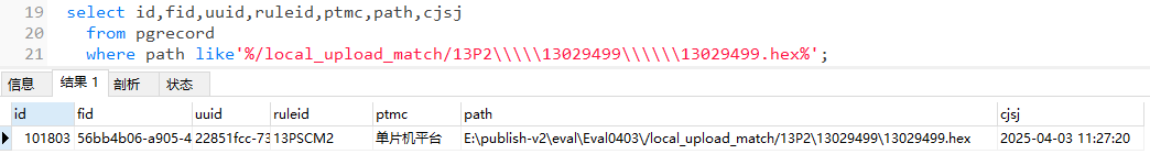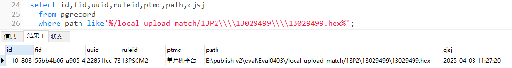 注:path='E:\publish-v2\eval\Eval0403\/local_upload_match/13P2\13029499\13029499.hex';对应了上图id=101803的那条数据的path