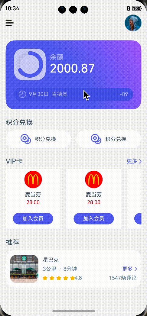 VIP卡部分有个左右滑动效果,这个可以使用scroll组件,相关代码如下: