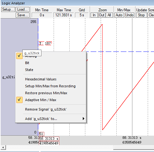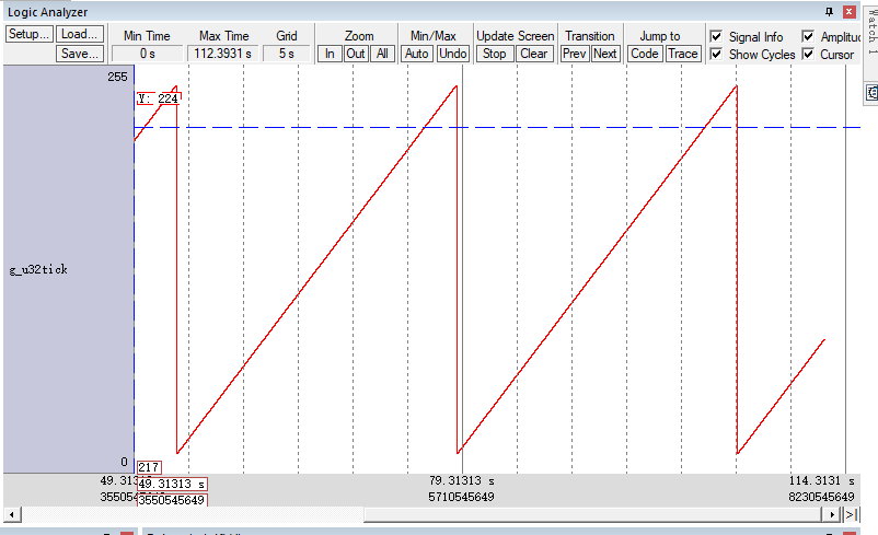 在调试过程中,可以使用keil自带的逻辑分析仪查看变量的试试信息,减少串口输出,提高部分cpu的效率,可以添加以下信息: