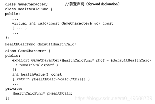 4.古典的Strategy模式:将继承体系内的virtual函数替换为另一个继承体系内的virtual函数,如下: