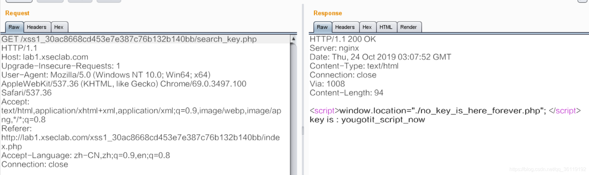 使用bp抓包,发现脚本控制网页跳转,所以我们看不到key。最后得到key:yougotit_script_now