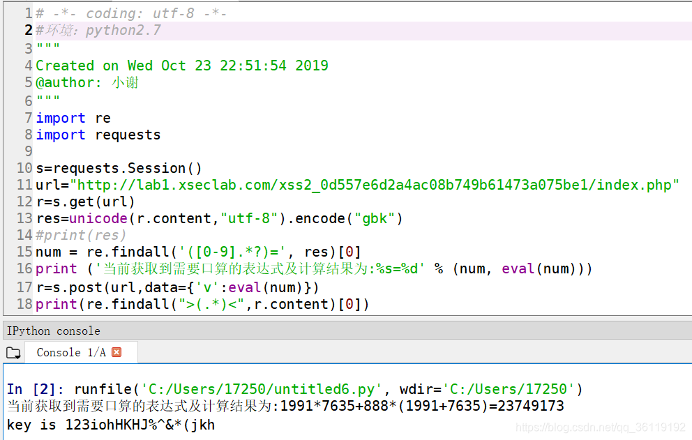 运行脚本,得到key:123iohHKHJ%^&*(jkh