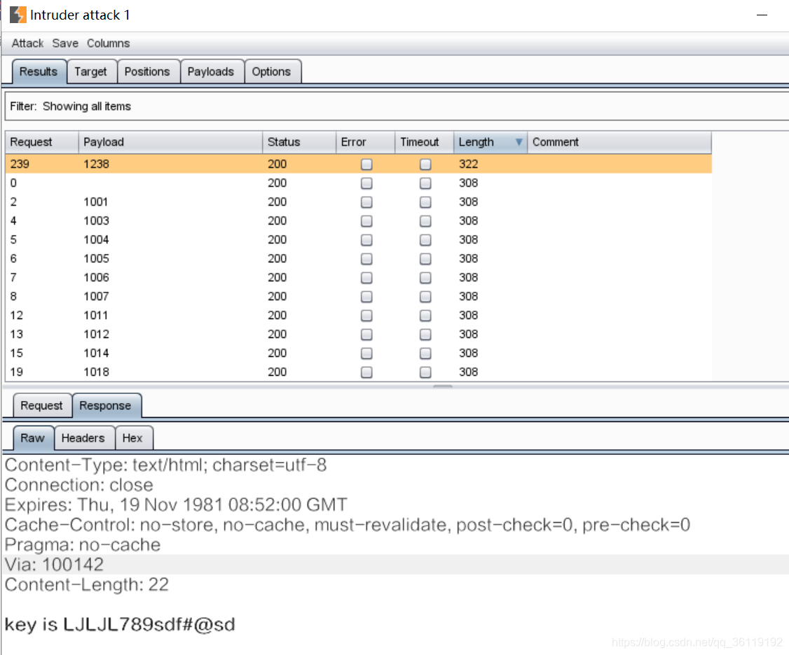 由于验证码失效,所以我们可以对pwd参数进行爆破,最后爆破得到pwd为1238,得到key:LJLJL789sdf#@sd