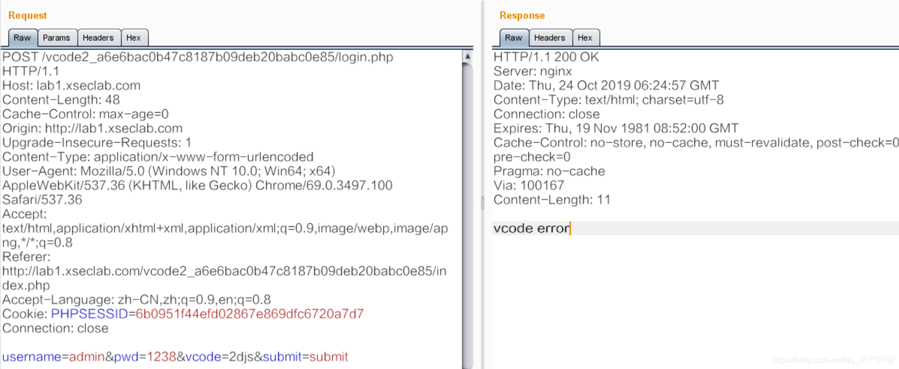 重放,返回的是vcode error。可知验证码验证一次即失效了