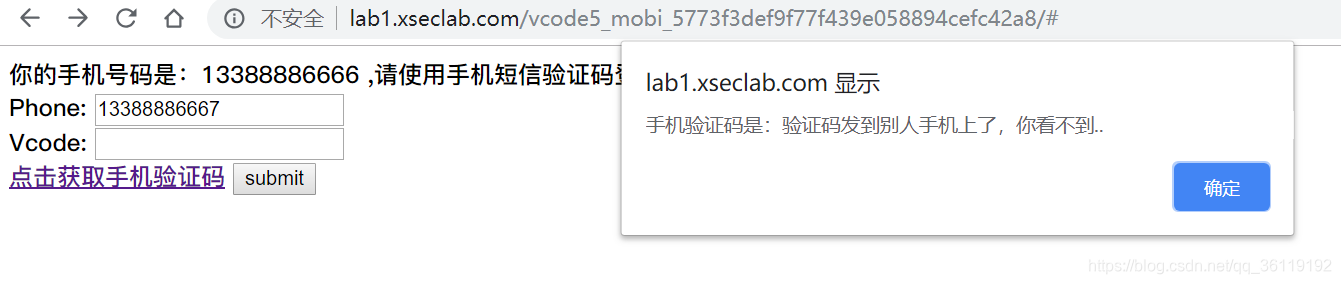 于是将手机号码改为13388886667,重新获取手机验证码,结果提示