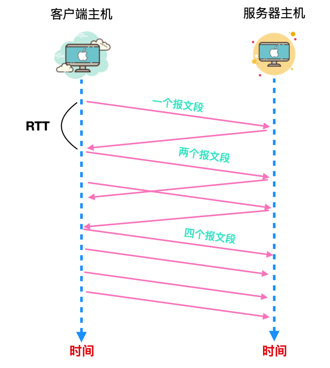 - 一个确认报文段指示发送方正在向接收方传递报文段,因此,当对先前未确认报文段的确认到达时,能够增加发送方的速率。为啥呢?因为未确认的报文段到达接收方也就表示着网络不拥堵,能够顺利到达,因此发送方拥塞窗口长度会变大,所以发送速率会变快