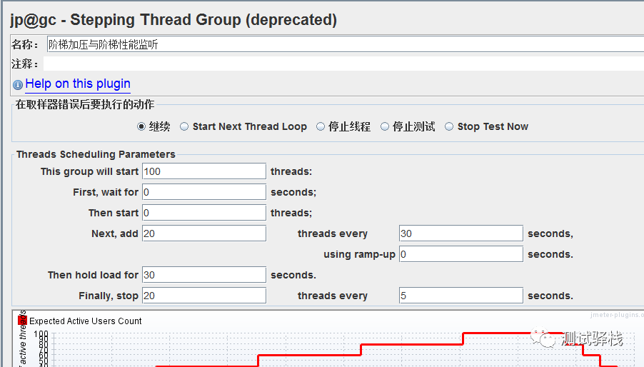 测试计划》添加》Threads》jp@gc - Stepping Thread Group (deprecated)