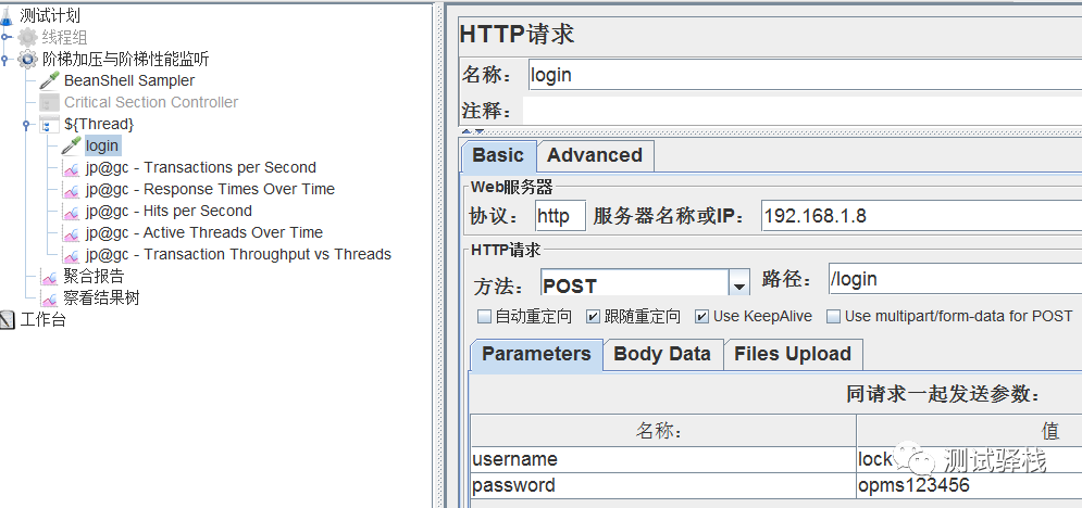 把opms的login请求放到事物控制器下面。事物控制器的名称是获取的Thread变量。中间也可以添加一些监听器