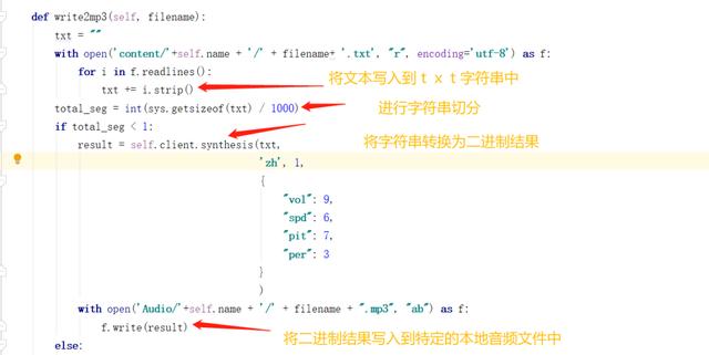 - 接下来是读取小说的文本,然后转换为语音形式,并保存到本地的mp3文件中;