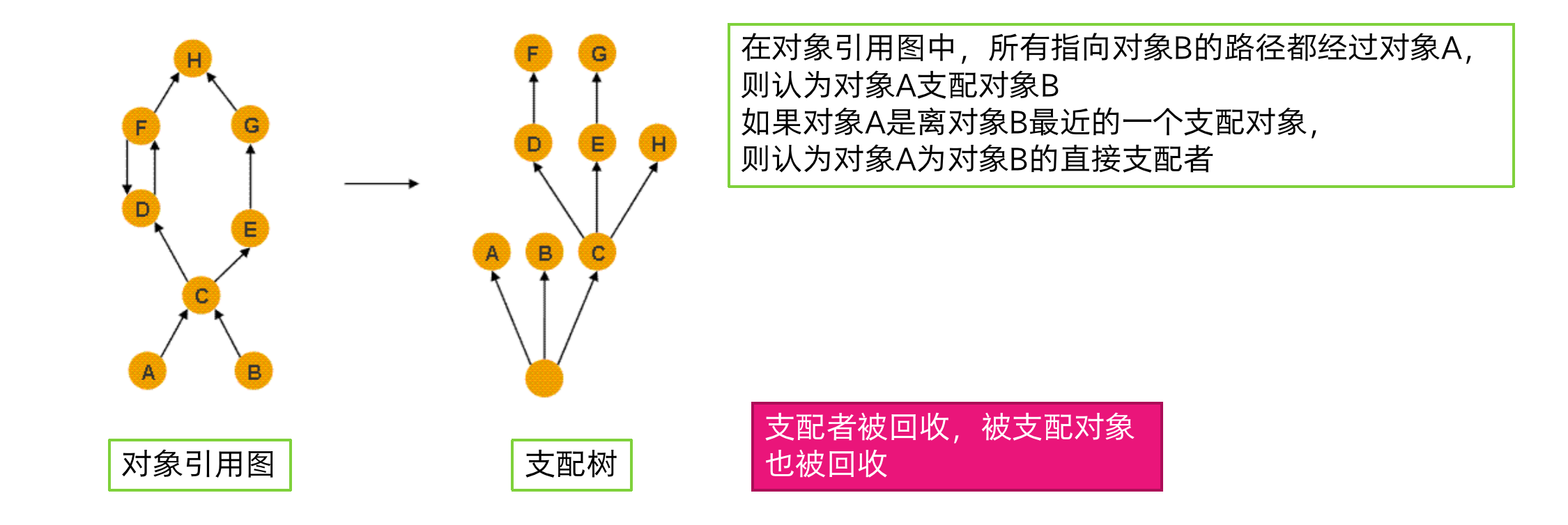 支配者被回收,被支配对象也会被回收:c被回收则d、e、f、g、h都会被回收