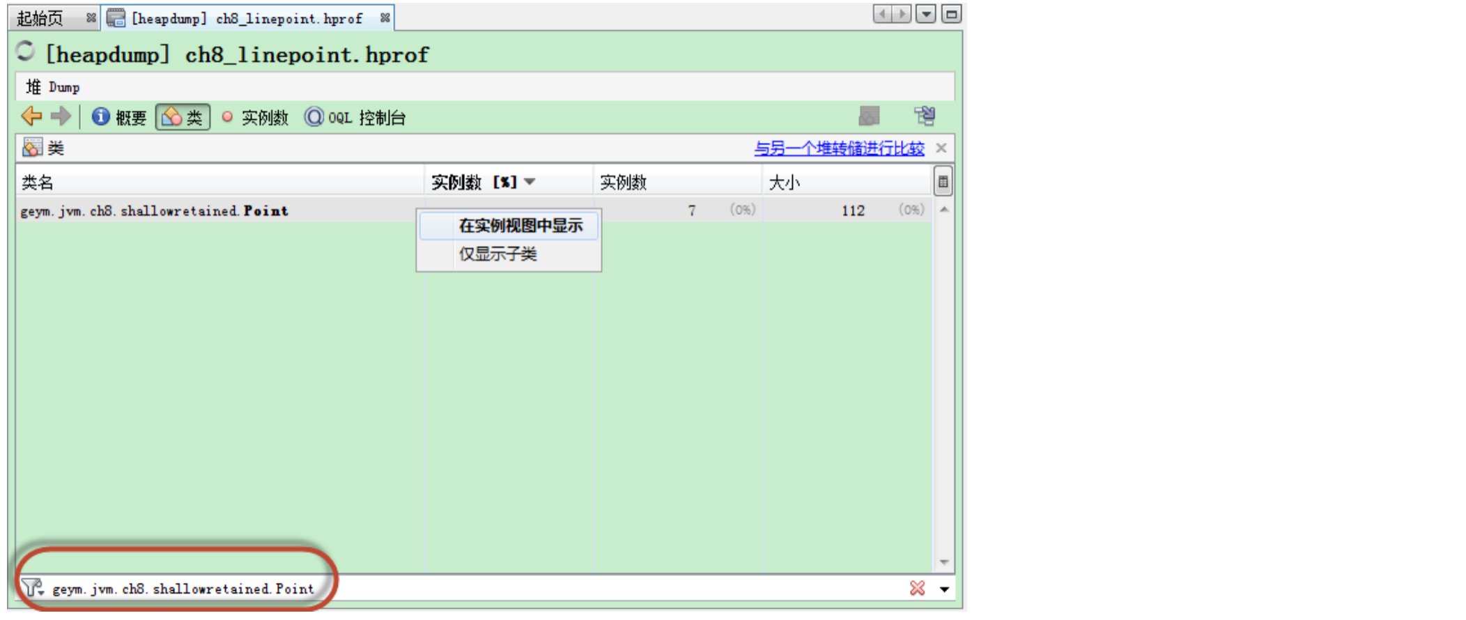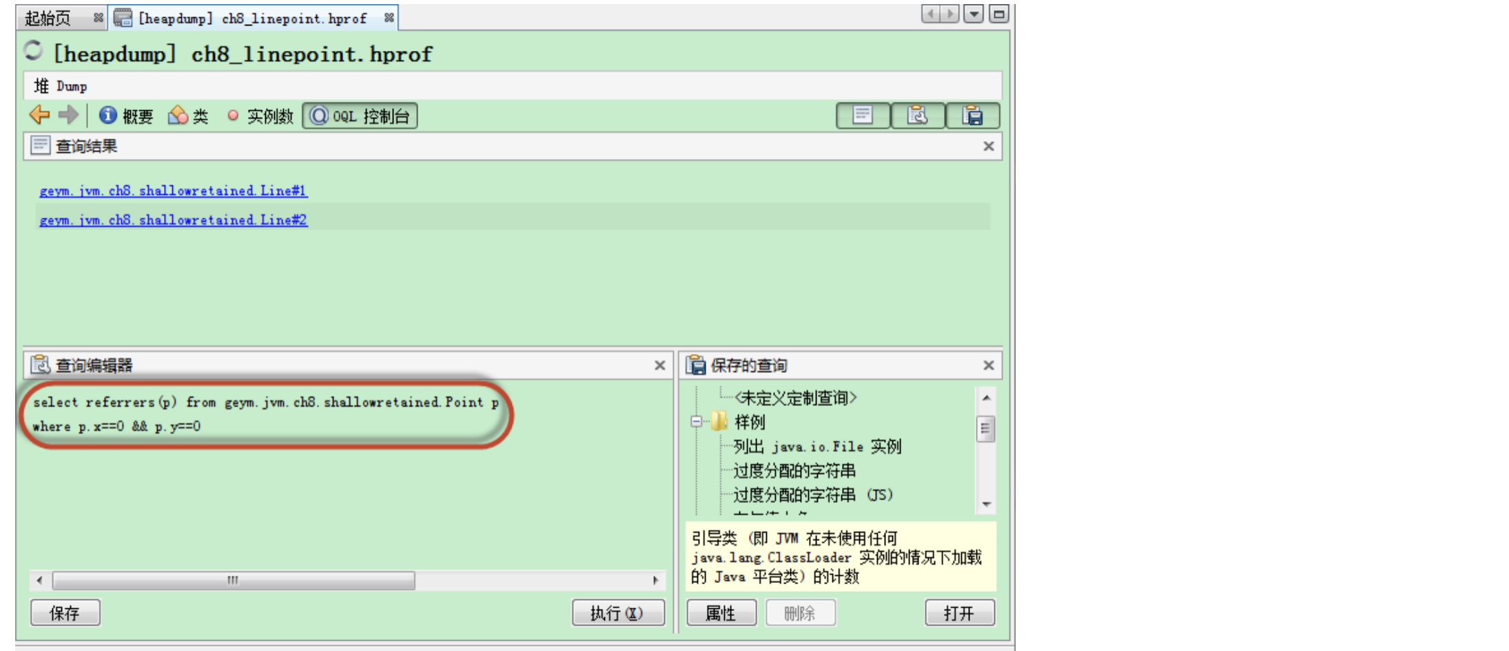 visual VM的OQL和MAT的OQL是有一定的区别的,但是也是支持的。