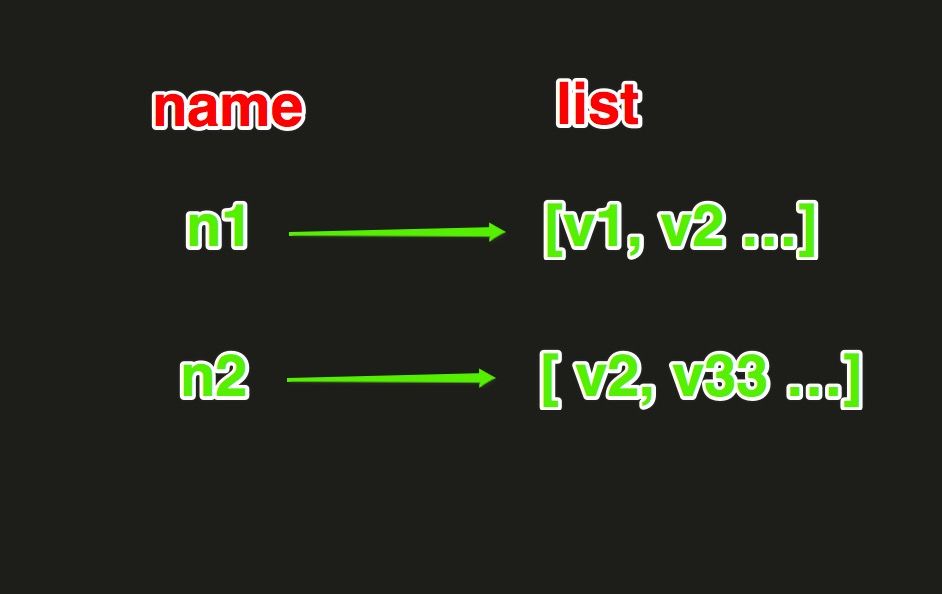 redis中的List在在内存中按照一个name对应一个List来存储。如图: