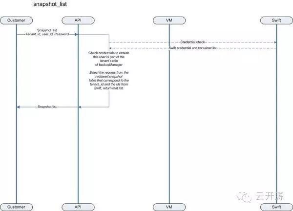 快照的存储产生的备份将被上传到Swift 中去。Trove将向 Swift 提供一个鉴权令牌。 快照将以用户的swift账号的身份保存在一个容器(container)中。当创建一份快照时,必须具有一定的Swift角色。