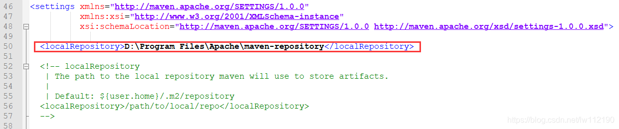 <localRepository>D:\Program Files\Apache\maven-repository</localRepository>