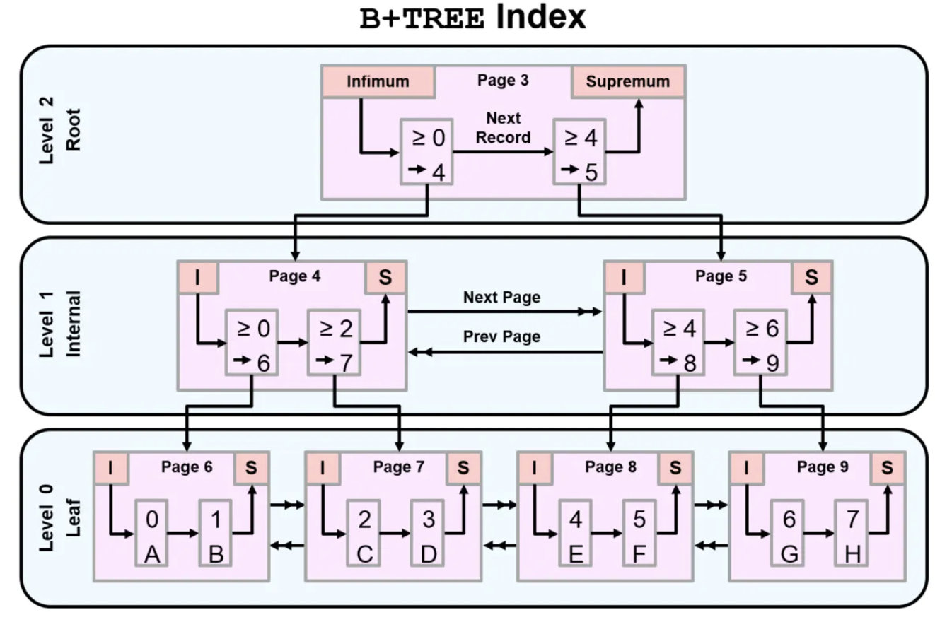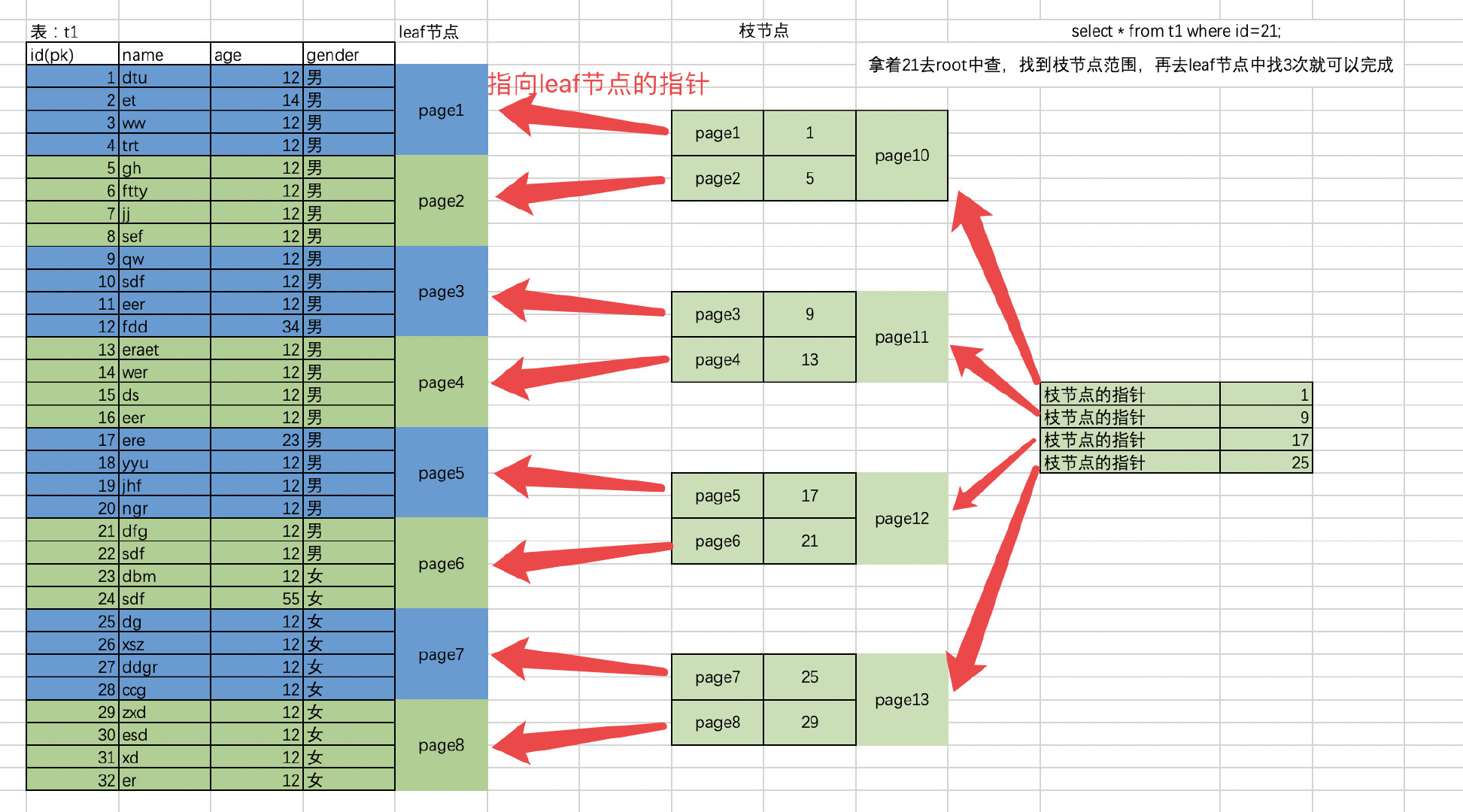 上图只是举例说明,并不是一个叶子节点只存4行数据