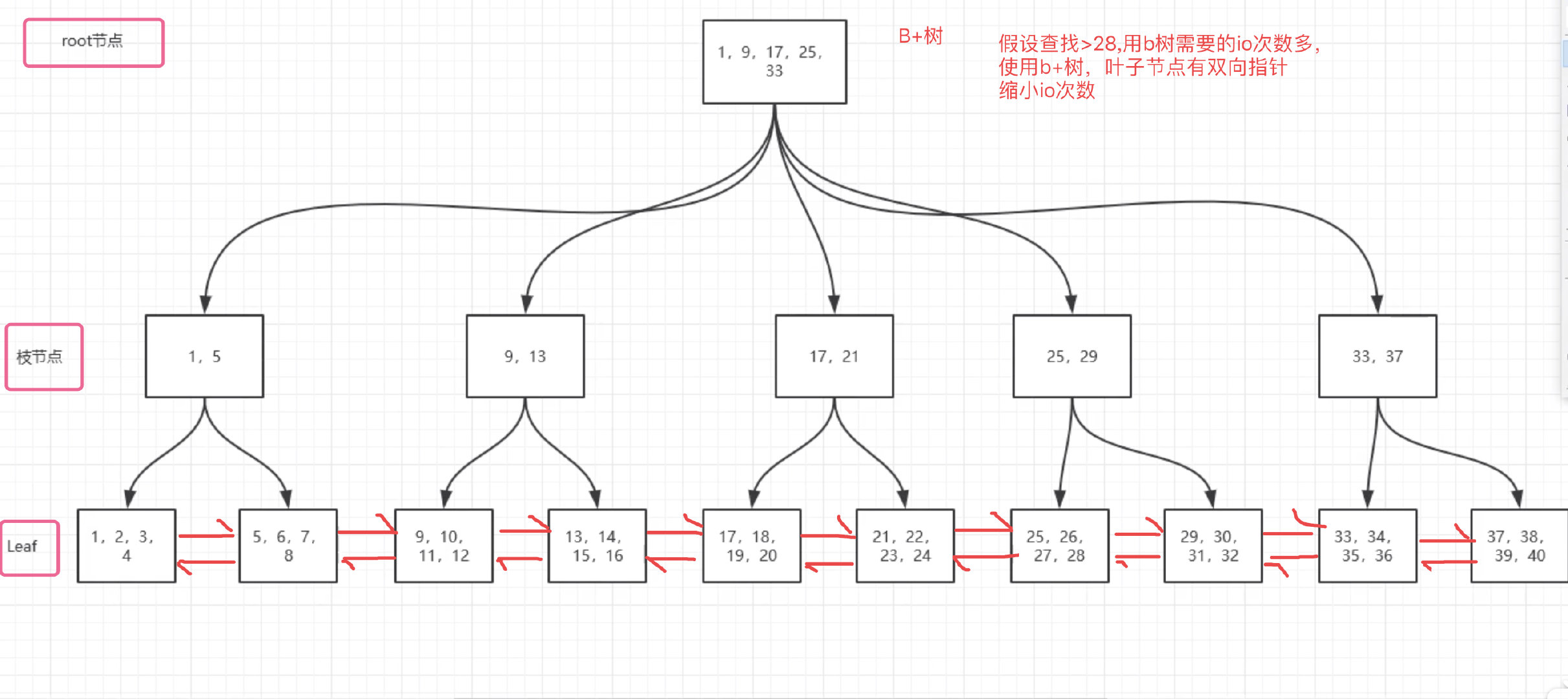 在b+tree基础上,枝节点也加入了双向指针(Innodb,使用B*树)