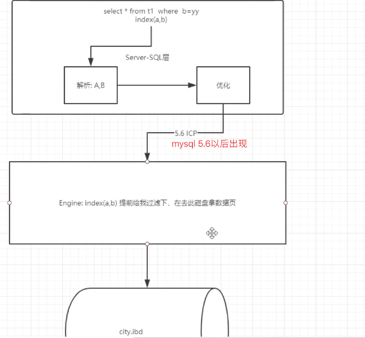 select 查询语句在sql层解析后,由优化器选择好方案,进入引擎层后,再由引擎层进行一次过滤,过滤好后再访问硬盘的页的数据