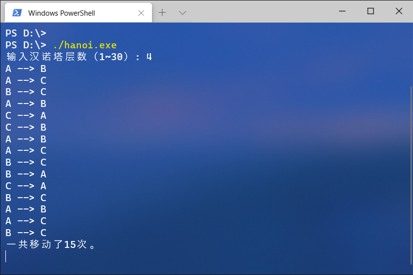 Console.Write($"输入汉诺塔层数(1~{MAX_VALUE}): ");