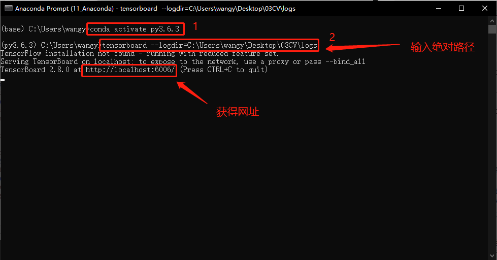 tensorboard --logdir=C:\Users\wangy\Desktop\03CV\logs