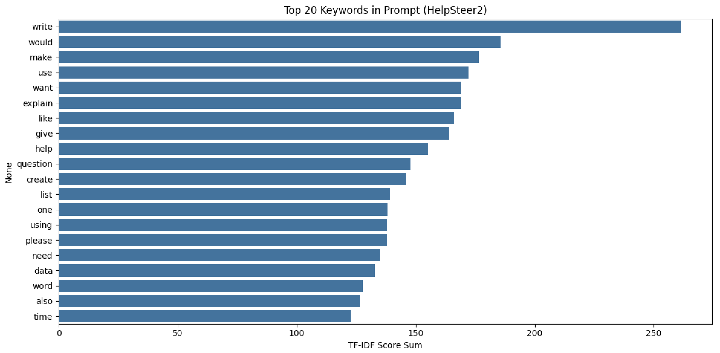 | 平均长度 | 135.8 词 | 104.9 词 | HelpSteer2 的提示文本平均更长(约长 30%),说明其用户提问更详细。 |