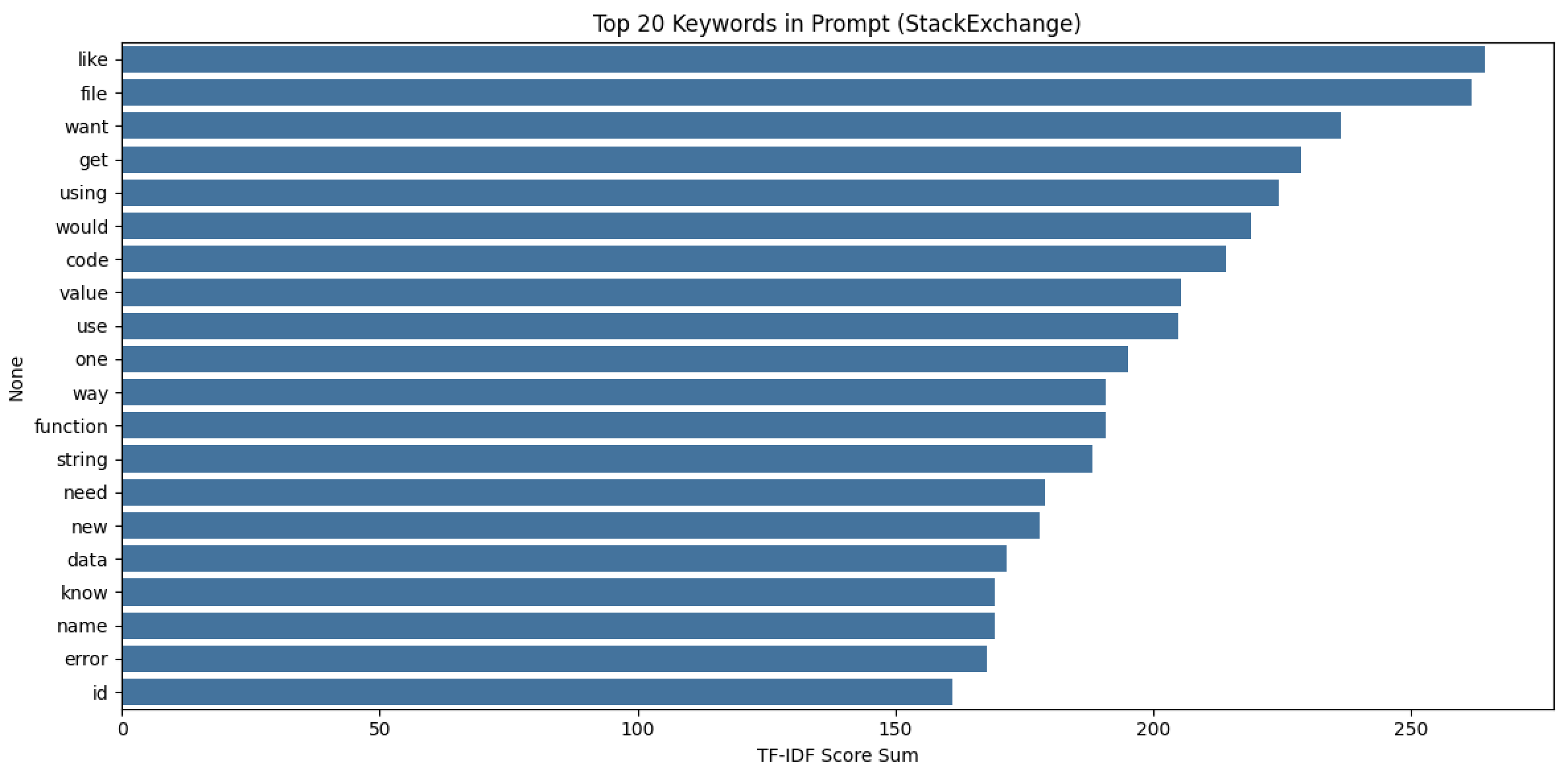 对比 StackExchange 和 HelpSteer2 两个数据集的高频关键词(Top 20),可以清晰发现它们在用户提问场景、核心需求上的显著差异,具体分析如下: