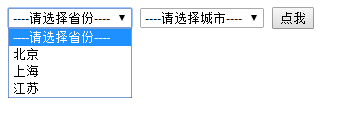 jQuery 二级联动 ----请选择省份---- 北京 上海 江苏 ----请选择城市---- 东城 西城 崇文 宣武 朝阳 黄浦 卢湾 徐汇 长宁 静安 南京 镇江 苏州 南通 扬州 & ...