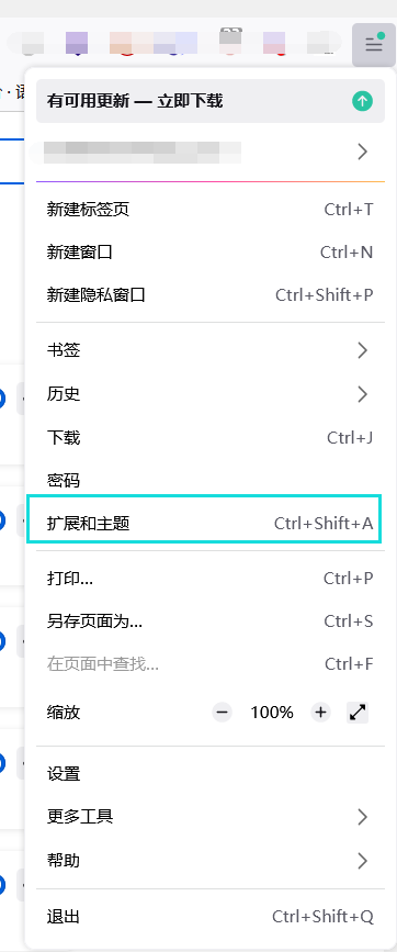 1.首先点击右上角的3条横杠,接着点击扩展和主题选项