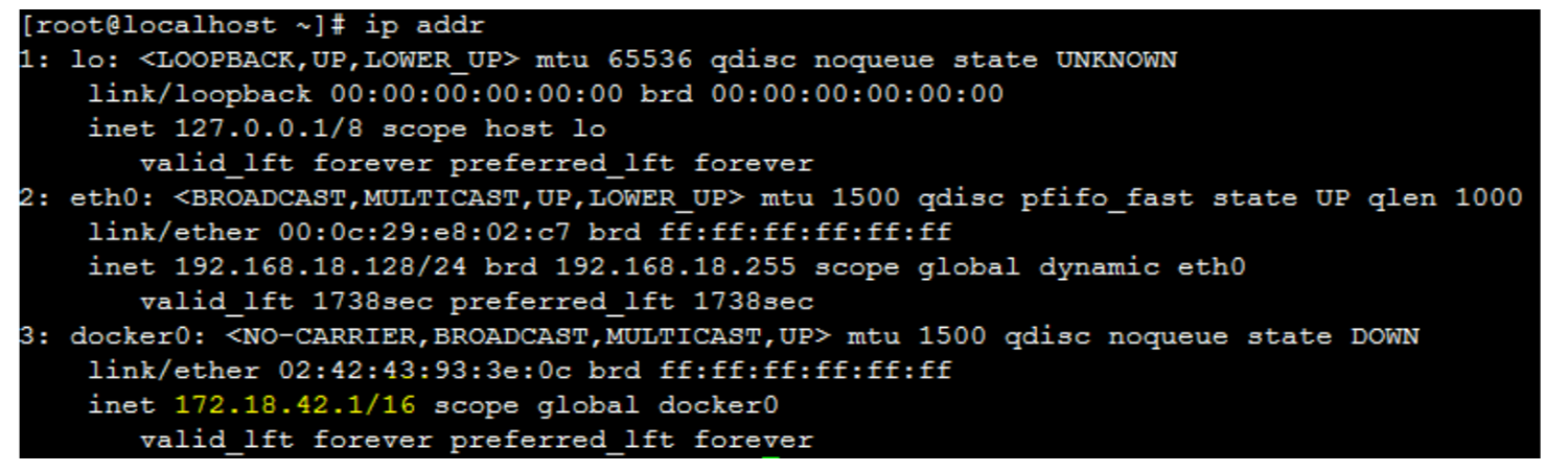 ttl表示经过一次路由会减一,说明eth0到docker0经过了一次路由,说明ping128是先通过路由经过了物理网卡eth0,在通过路由到了docker0