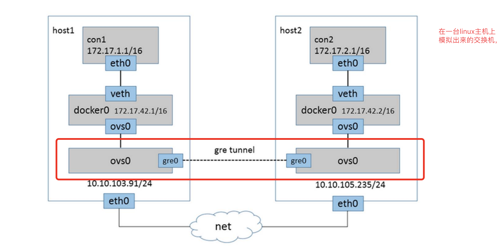 这种方法,docker的私有网络包,被封装到了一个已有的物理网络上,外面是看不到的。