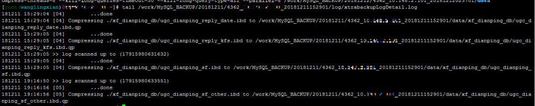 查看日志我们看到,日志是停在一个压缩文件的过程中,且上面完成了多次文件的压缩操作;
