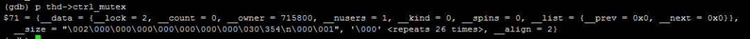 通过gdb可以看到,__kind的值为0,一定是非共享锁;