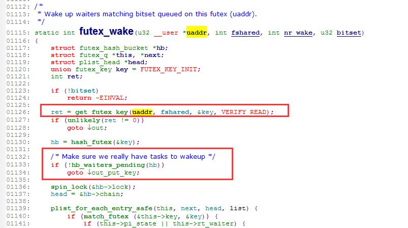futex_wake函数中会查看hb变量里有没有需要被唤醒的锁,如果没有就不做唤醒操作。