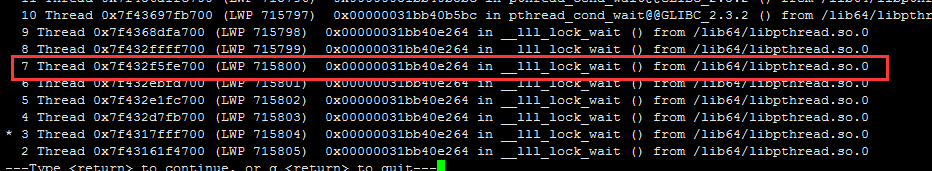 它在等其owner 715800 释放,而715800 对应的是7#线程