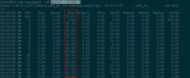 1. 通过 mpstat -P ALL 1 命令查看cpu 都用在哪里,可以看到cpu都绝大部分用在 sys态上。