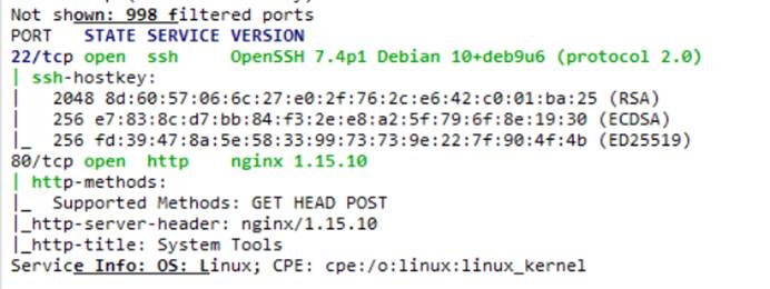 端口扫描,发现运行了80端口和22端口,22开放ssh服务