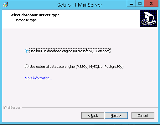 这里是让你选择存储数据的数据库,有两种选择,一种是使用嵌入型数据库Microsoft Sql Compact,另一种是自定义数据库。前一种选择,相对来说更轻量,简单,这里我选择直接就选择默认方式进行安装。