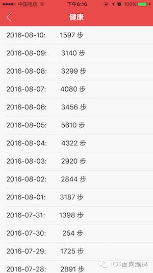 myHealth.startDate = [LXHealthKitManager getTodayAgoWithDays:30];//获取今天之前三十天的步数[myHealth getStepCountWithSuccess:^(NSArray *results) {