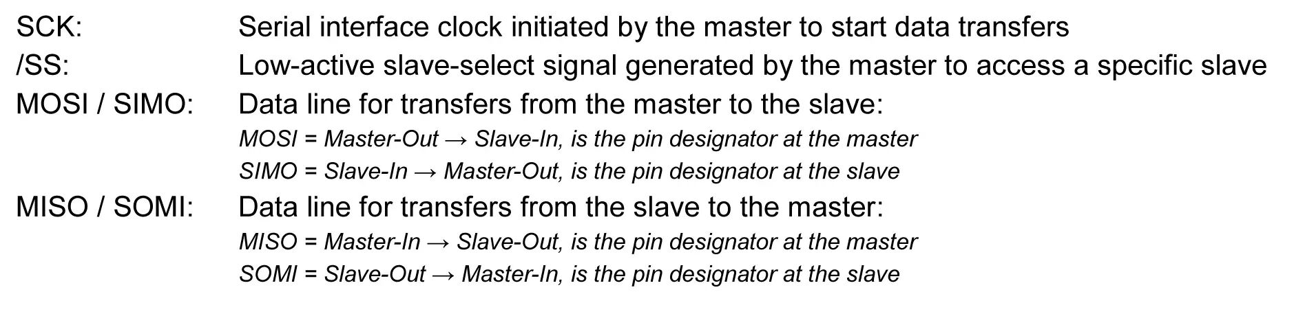 虽然表 1 中的引脚名称来自摩托罗拉开发的 SPI 标准,但具体集成电路的 SPI 端口名称往往与图 1 中所示的不同。