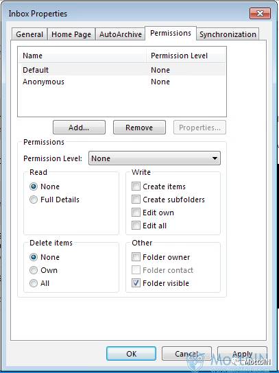如果用户错误地将权限级别“默认”设置为“None”之外的其他选项(除Contributor之外),则这可能允许组织中的每个成员访问该邮件文件夹。