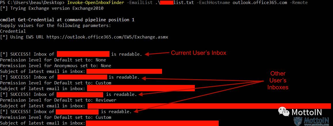 接下来,运行Invoke-OpenInboxFinder函数: