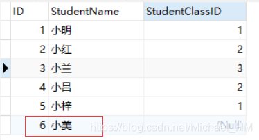 例如:查询xx学生在xx班级 沿用上面的数据表