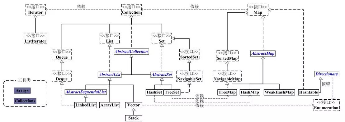 我们看到,抽象类AbstractCollection、AbstractList和AbstractSet分别实现了Collection、List和Set接口,这就是在Java集合框架中用的很多的适配器设计模式,用这些抽象类去实现接口,在抽象类中实现接口中的若干或全部方法,这样下面的一些类只需直接继承该抽象类,并实现自己需要的方法即可,而不用实现接口中的全部抽象方法。
