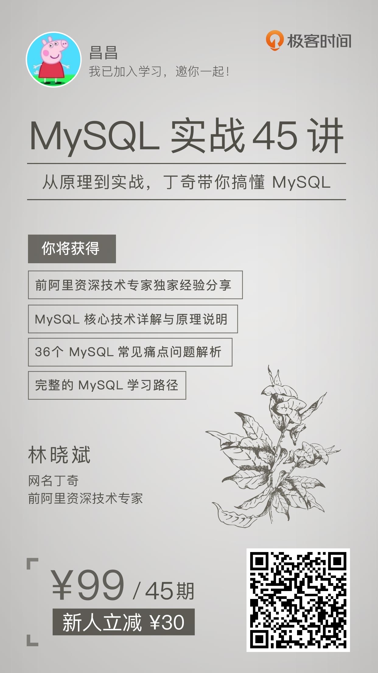 最近有很多同学问我有没有系统学习mysql的文章或书籍推荐,突然想起了前些天在看沈剑老师的公众号推荐的mysql学习课程:丁奇老师《MySQL实战45讲》,确实非常系统非常不错,所以推荐给大家!